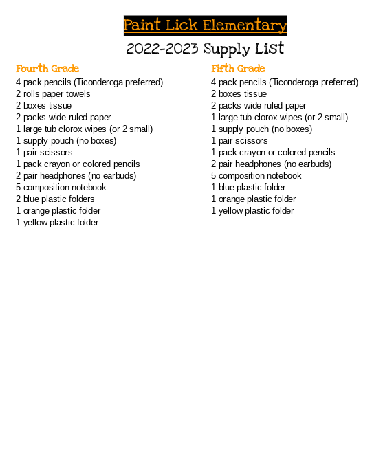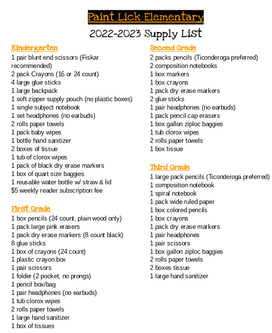 PLE Supply List 2022-2023