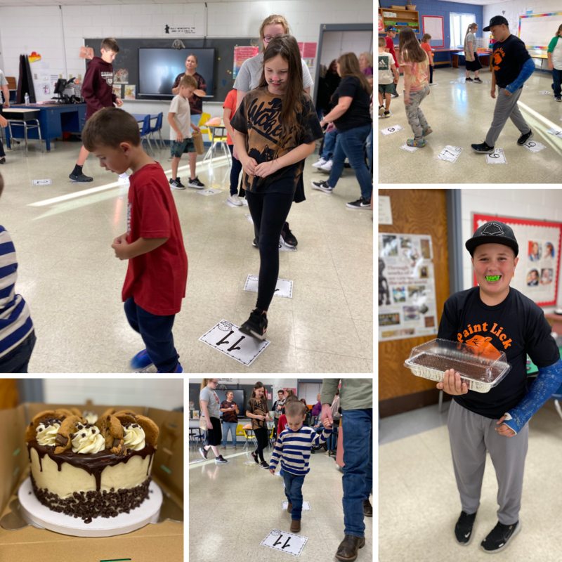 One of the most popular booths visited would have to be the Cake Walk Booth. Parents, community members, and staff donated dessert items for the Cake Walk. Students used their punch cards to enter the cake walk rounds, which were led by PLE staff members- Mrs. Noe and Mrs. McGlothlin. Take a look at their fun!