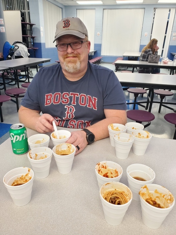 PLE Parent, Louis Brin, sampling all thirteen chili entries.